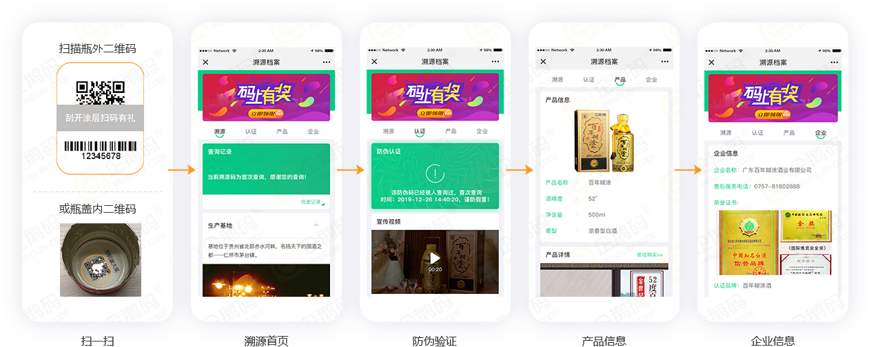 提供最便利有效的防伪认证方式;针对消费者做直接有效的促销,提升产品销量